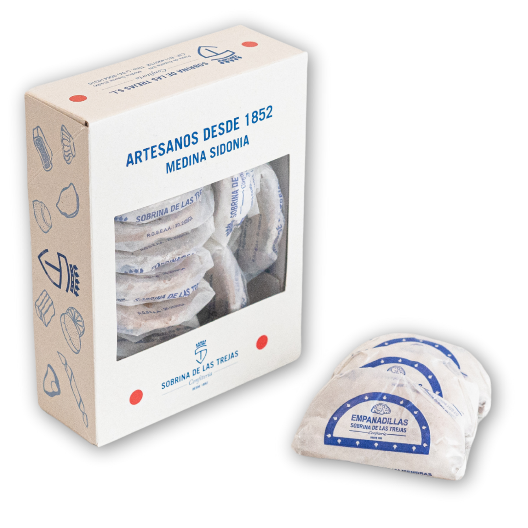 Estas empanadillas, que resultan sorprendentemente tiernas, están realizadas con una masa de mazapán relleno de una crema de yema con un poco de licor. El conjunto se espolvorea con azúcar glass.