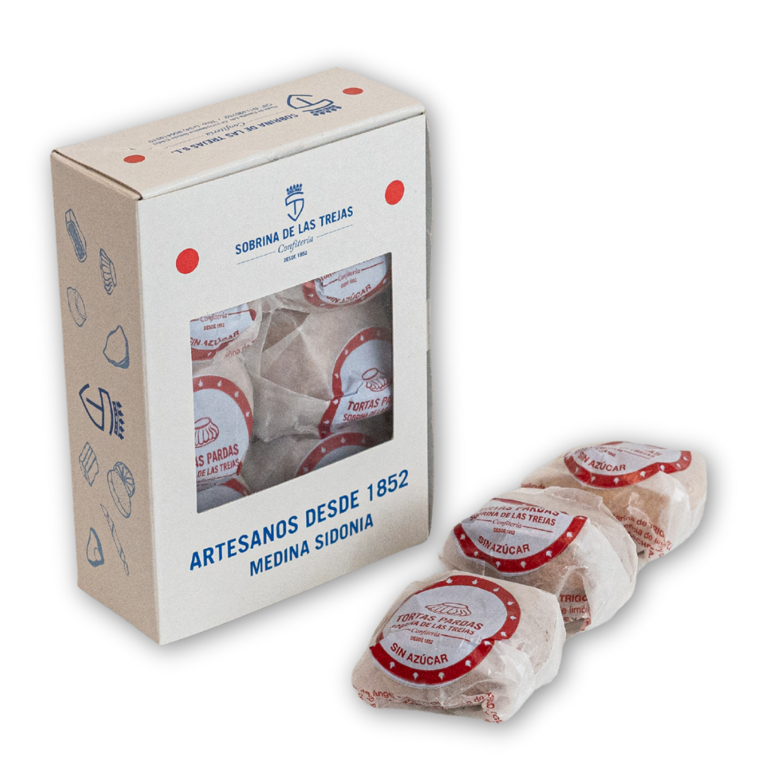 Las tortas pardas están compuestas por una masa de almendras en forma de canastilla que se rellena de cabello de ángel. Luego se tapa con más masa de almendras. Resulta un dulce jugoso condimentado con limón y canela. Hay dos teorías sobre el origen de su nombre, una a la que hace referencia a su color pardo y otra que sostiene que el autor de su receta fue el gastrónomo Doctor Thebussem (Mariano Pardo de Figueroa). Prueba nuestra versión sin azúcar que no te dejará indiferente. Apto para diabéticos.